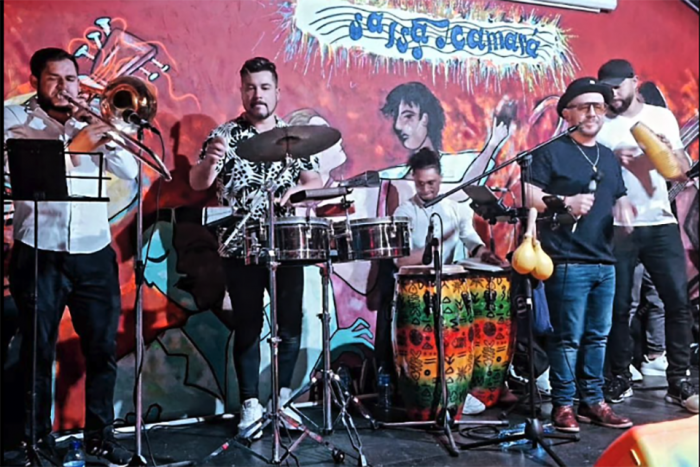 Siente el vibrar de los metales y el ritmo de los cueros en un espectacular show en vivo de 7 músicos en escena, Alex Rebambaramba y su orquesta reviviendo los grandes clásicos de la salsa y la timba que marcaron una época.