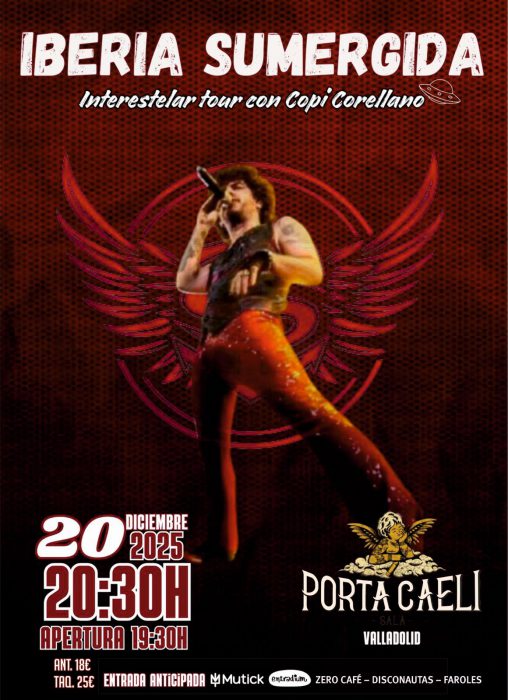 Iberia Sumergida tributo a Héroes del silencio con el maestro Copi Corellano, teclista del tercer disco de estudio de Héroes del Silencio » El espíritu del vino» y de la banda de Enrique Bunbury «El Huracán Ambulante». Nos complace anunciar esta gira donde tocaremos los temas de Héroes del Silencio, tal y como lo venimos haciendo estos 18 años, pero con el añadido de sonidos espaciales hechos desde el corazón por el maestro Copi Corellano con sus sintetizadores y hammonds recién adquiridos para este último tour con Enrique Bunbury.