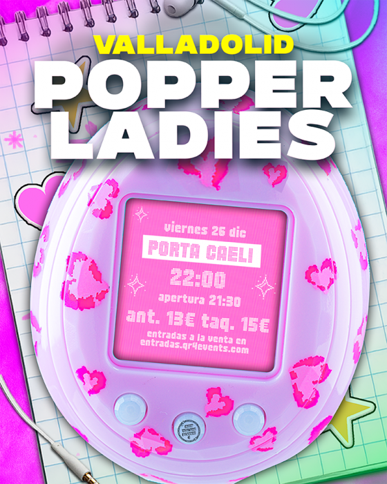 POPPER LADIES es una fiesta de confeti, luz y color. Un proyecto atrevido, nacido para hacer temblar los cientos de lo establecido. La banda surge como un renacimiento musical, donde sus miembros deciden enfrentarse al reto de su vida, fusionar el Rock con la música comercial. Sonidos propios del pop y el urbano se entremezclan con ritmos contundentes y guitarras afiladas para crear un producto único.