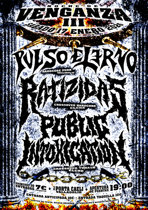 El próximo 17 de Enero vuelve tu evento de hardcore favorito, en Valladolid, de la mano de Public Intoxication + Ratizidas + Pulso Eterno en la sala Porta Caeli.